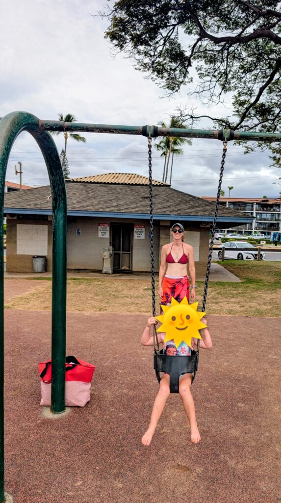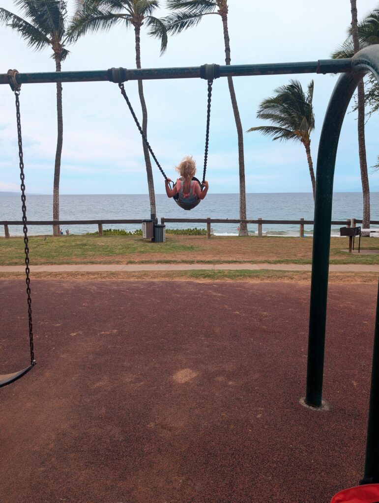 Kam III also has a large swing set area, so Ayla and I did LOTS of swinging – if you know her, you know she’s obsessed with her swings! We got at least 30 minutes of swinging time in before we walked back to our condo for lunch and to get ready for the evening events.