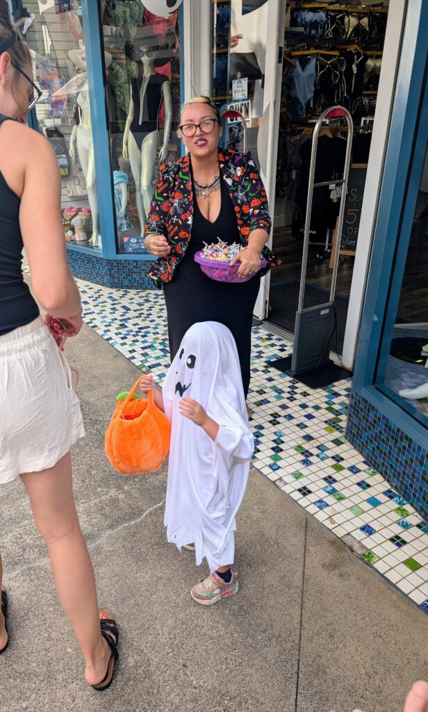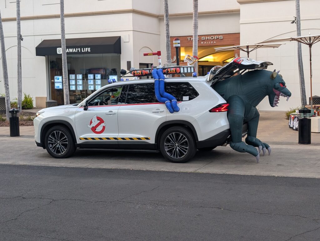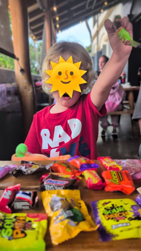 After the magic show we visited the other stores to finish our trick or treating fun. Between the two trick-or-treating nights, I found this one more fun. The kids were spaced out throughout the whole shopping center, so it had a more relaxed feel. There were also a ton of trick or treating stations, so it kept Ayla entertained walking to all the stores. The Shops at Wailea also did a grand prize for best costume of TWO round trip tickets to any destination that Alaska Airlines flies. So there were a ton of families in coordinated, extravagant costumes, it was a definitely a night to remember.