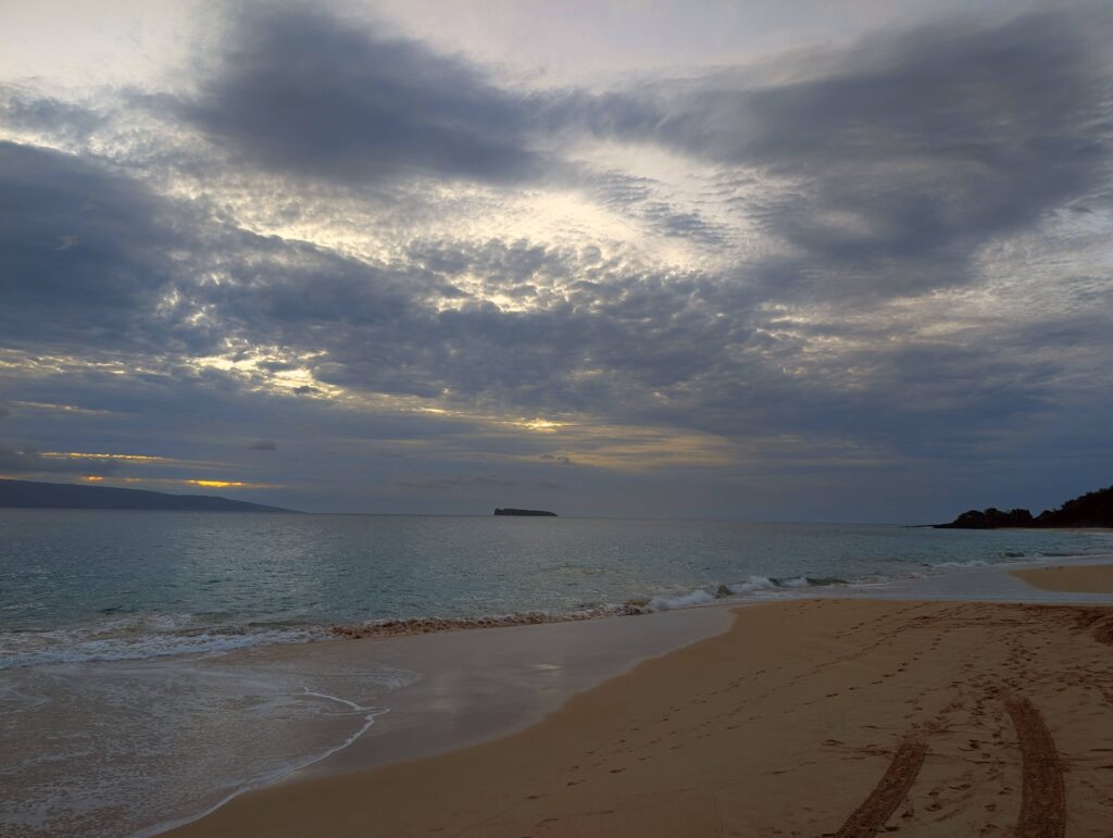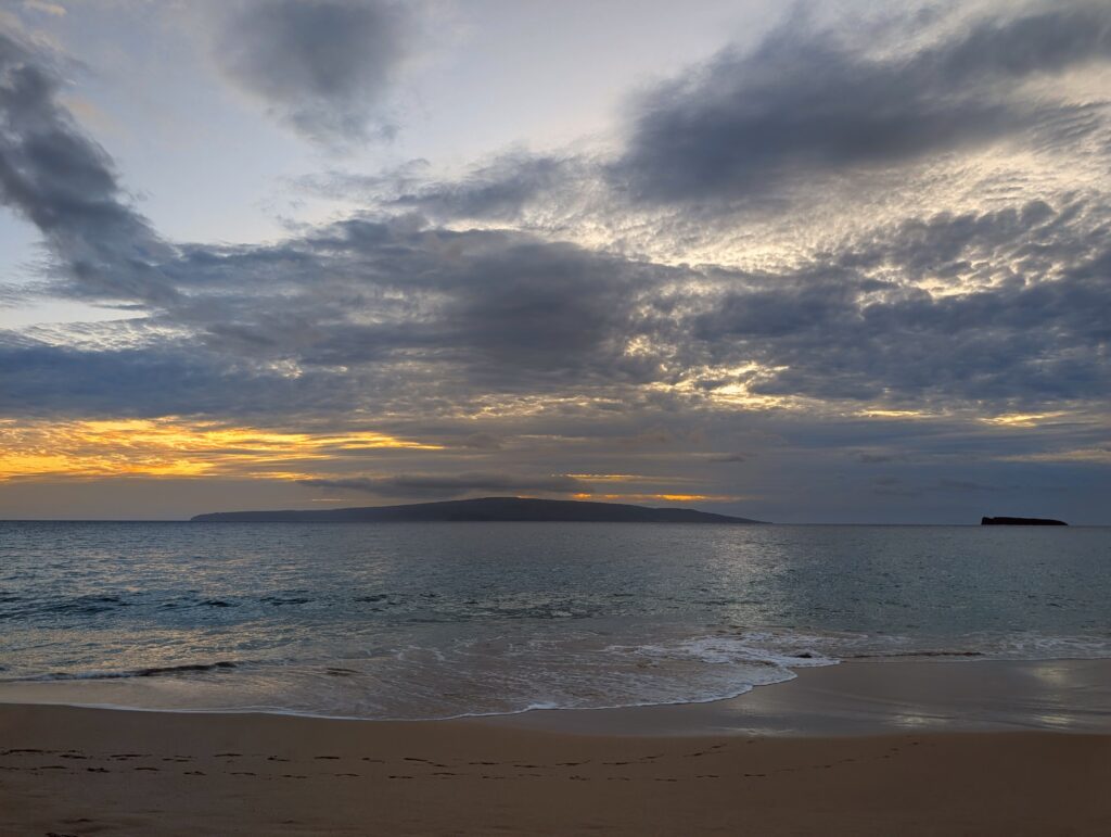 To end our night, we wanted to try to catch our first sunset of the trip. So we decided to head to Big Beach (also known as Makena Beach) to hopefully catch it. Unfortunately, it was pretty cloudy, so while we couldn’t see the sunset, the clouds were still mesmerizing. We enjoyed the beach for about 30 minutes then it was time to go home and head to bed.