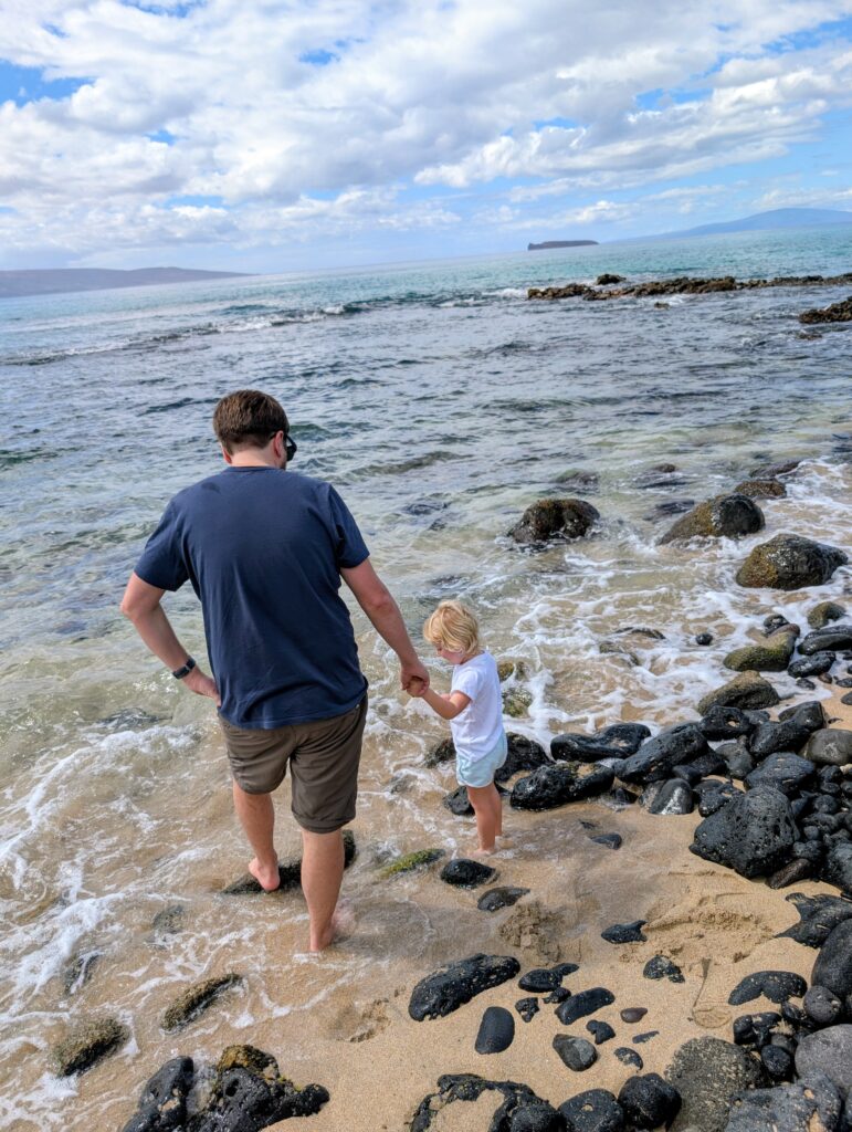 Our first day was eventful in all the best ways. Our flight from Spokane left at 5am, so we stayed at our Uncle and Aunts place so the dogs could stay on their normal schedule with our dog/house sitter. We set the alarm clock for 2am and at 245am I went into Ayla’s bedroom to wake her up for a quick car transfer but she heard the door open and immediately sat up and said “is it time to go to Maui?”. “It’s time!” I said. She shouts “YAY!” and shoots out of bed and gets her shoes on and is talkative the whole rest of the morning. Our flight from Spokane to Portland was quick and smooth. However, when we were going in for landing, the plane all of a sudden revved up and quickly started to ascend again. Once we leveled out the captain came on and said that the radio frequency had interference with another flight so they had to attempt landing a second time. That was a little concerning, but we had a 40 min layover in Portland and still easily made it to our next and final leg of the journey. After waiting an hour on the runway, we were finally off and on our way! The flight was perfect. Ayla slept for the last 2.5 hours, so when we landed she was well rested and ready for the adventures ahead.
